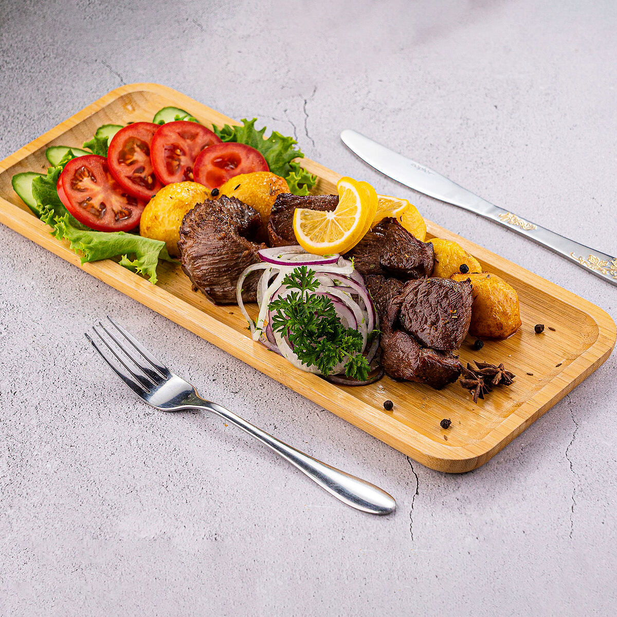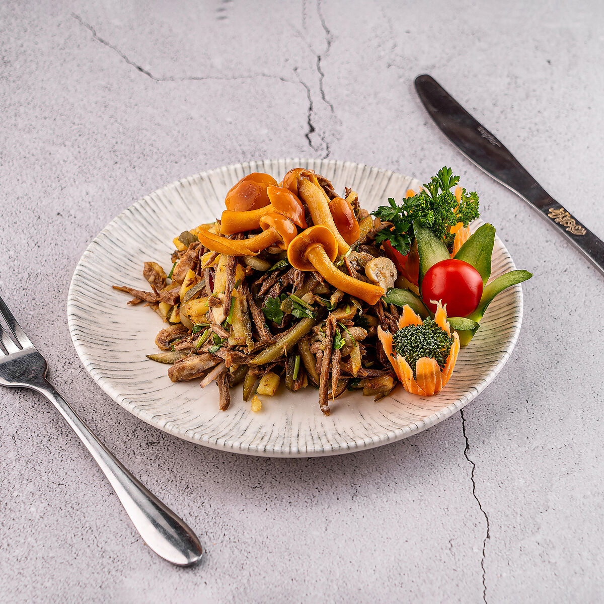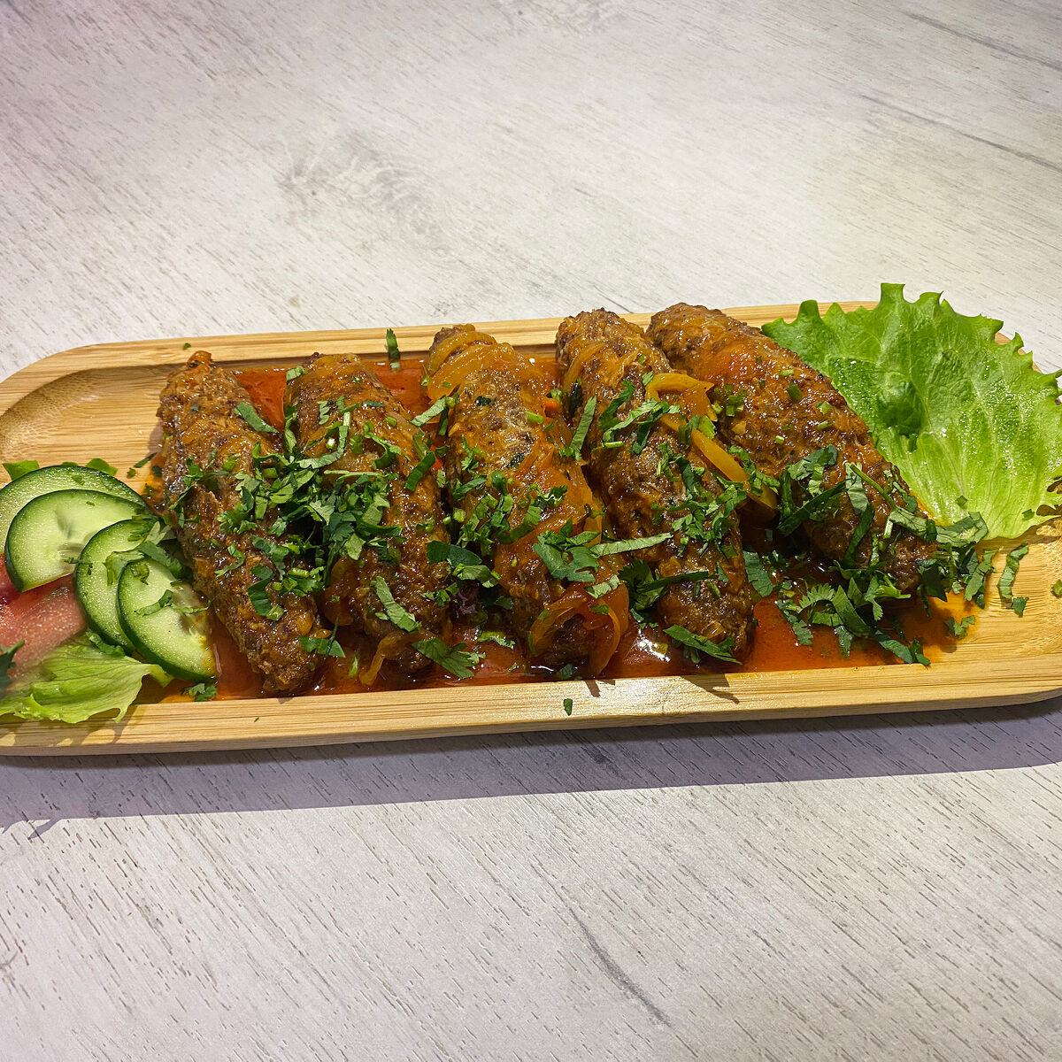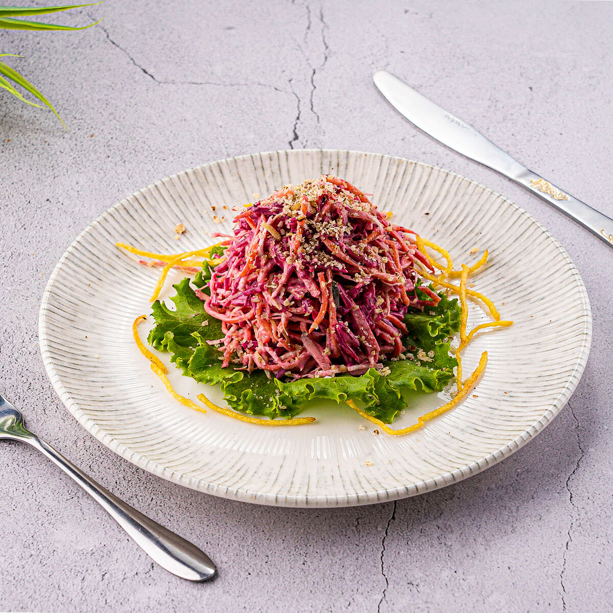 Огурцы и помидоры в сочетании с маринованными грибами и кукурузой. Куриная грудка добавляет сытности, а салат айсберг — свежести. Майонез объединяет вкусы ингредиентов. Салат «Зарафшон» оставляет приятное послевкусие