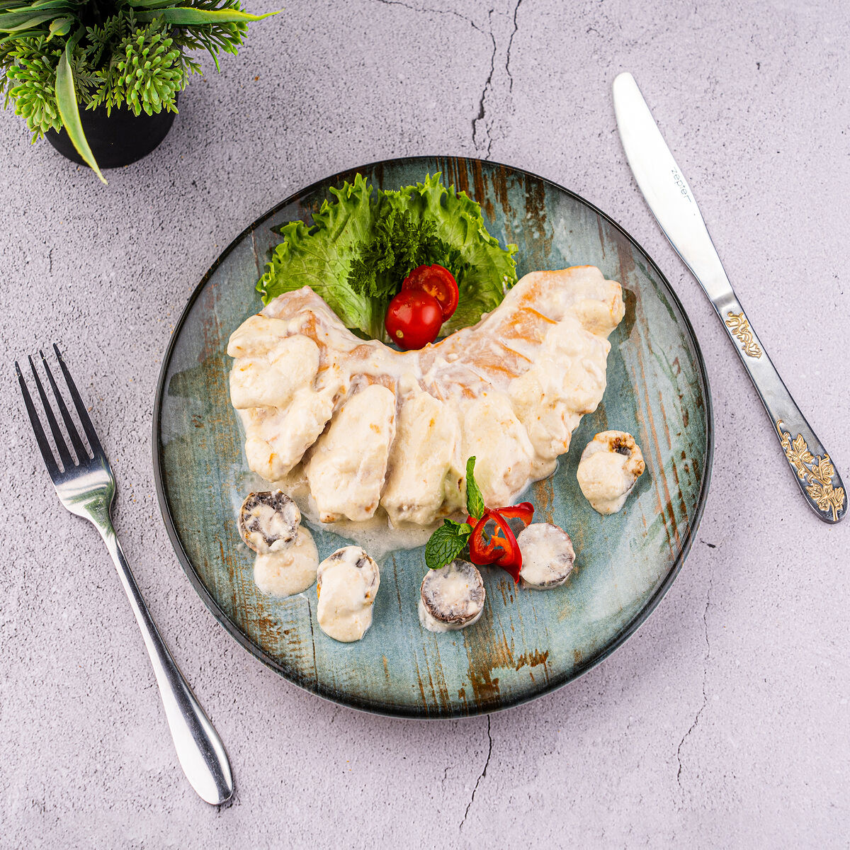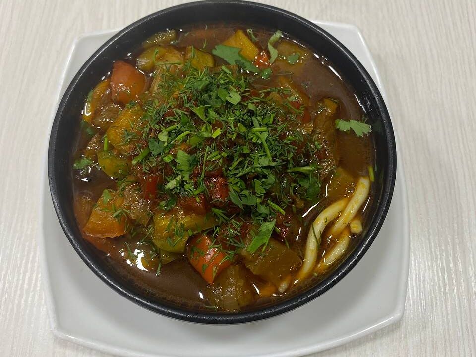 Огурцы и помидоры в сочетании с маринованными грибами и кукурузой. Куриная грудка добавляет сытности, а салат айсберг — свежести. Майонез объединяет вкусы ингредиентов. Салат «Зарафшон» оставляет приятное послевкусие